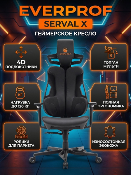 Геймерское кресло Everprof Serval X экокожа - Обзор ТОП-10 лучших ортопедических кресел 2025 🏆: Обзор и рейтинг