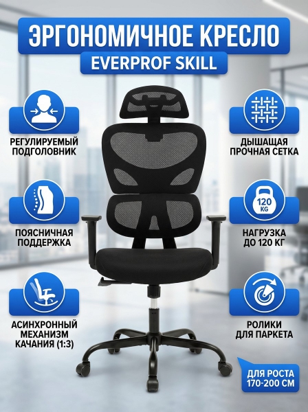 Кресло эргономичное Everprof Skill сетка - Обзор ТОП-10 лучших ортопедических кресел 2025 🏆: Обзор и рейтинг