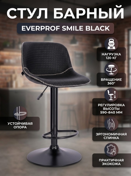Стул барный Everprof Smile Black экокожа - БрендСтрана бренда: КНР Премиальность бренда:Стул барный Everprof Smile Black экокожа - Характеристики