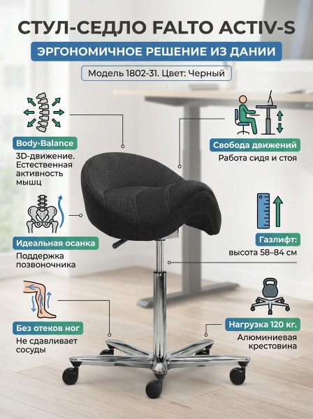 Стул-седло Falto Activ-S с механизмом Body-Balance - Обзор ТОП-10 лучших ортопедических кресел 2025 🏆: Обзор и рейтинг