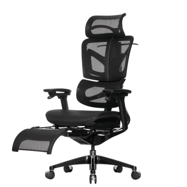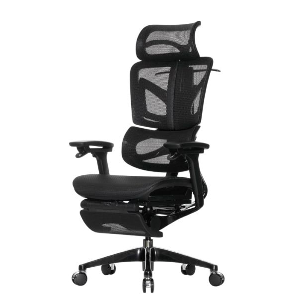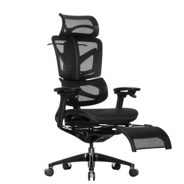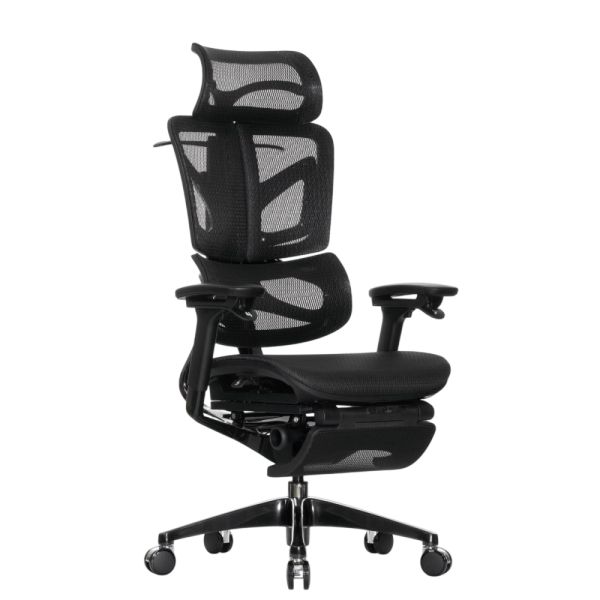 Кресло с подножкой Falto BLACK DIAMOND тихие вставки, управление на подлокотниках, сетка, черный - Обзор ТОП-10 лучших ортопедических кресел 2025 🏆: Обзор и рейтинг