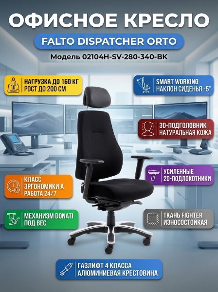 Офисное кресло Falto Dispatcher Orto 02104H SV280-3401, черное - Обзор ТОП-10 лучших ортопедических кресел 2025 🏆: Обзор и рейтинг