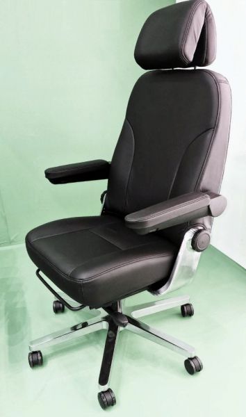 Спинка кресла. Конструкция спинки аналогична профессиональным креслам для автомобилей. Оригинальное решение, дополнено отдельным механизмом регулирующем положение спинки. Возможна фиксация в режиме отклонения, вертикальное положение и наклон в рабочую зону (в сторону стола). Для поддержки и фиксации нижнего отдела спины пользователя в спинке диспетчерского кресла выделен поясничный валик и предусмотрена боковая поддержка, аналогичная той, что используется в автомобильных креслах.
