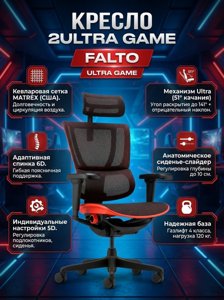 Кресло эргономичное Falto Ergohuman 2 Ultra Game (наклон вперед, сетка, черный с красным)