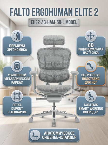 Офисное кресло Falto Ergohuman Elite 2 (серый каркас/сетка светлая) - Преимущества