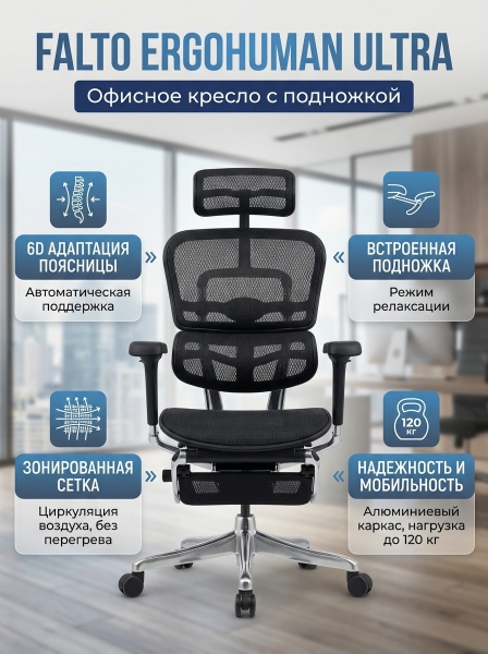 Офисное кресло Falto Ergohuman Ultra с подножкой, черное