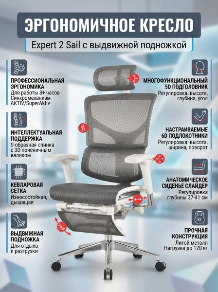 Кресло эргономичное Falto Expert 2 Sail с подножкой - ОписаниеСомневаетесь? - Посмотрите рейтинг ТОП-10 по категории «Ортопедические кресла»Современное, красивое, престижное, и, самое главное – профессиональное эргономичное кресло Expert Sail , разработанное специально для тех, кто долго работает в положении сидя – лучший выбор для обустройства комфортного рабочего места в офисе или дома!