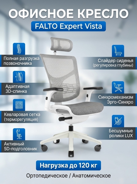Кресло для персонала Falto Expert Vista белый каркас - Обзор ТОП-10 лучших ортопедических кресел 2025 🏆: Обзор и рейтинг