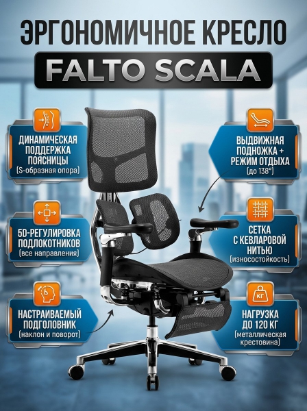 Эргономичные кресло с подножкой Falto Scala черный каркас - Обзор ТОП-10 лучших ортопедических кресел 2025 🏆: Обзор и рейтинг