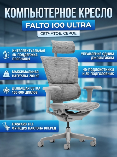 Высокотехнологичное компьютерное кресло Falto IOO Ultra сетка, серый - Преимущества