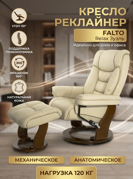 Кресло-реклайнер для дома и офиса Falto Relax Зуэль (темный орех) - Обзор ТОП-10 лучших ортопедических кресел 2025 🏆: Обзор и рейтинг