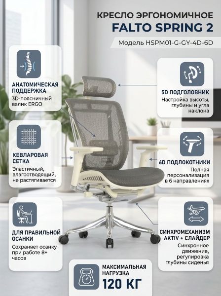 Кресло эргономичное Falto Spring 2 (серая сетка) - Преимущества