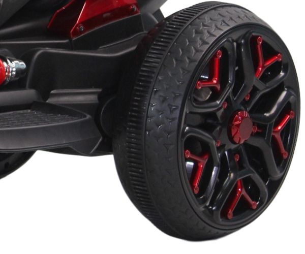 Детский электромотоцикл (2020) Farfello DLS5188 красный - ОписаниеЭлектромотоцикл DLS05 – новинка 2020 года, модель с тремя устойчивыми колесами предназначена для катания одного ребенка в возрасте от 3 до 8 лет. Мотоцикл оснащен всеми необходимыми функциями для увлекательных и безопасных поездок. Для включения трицикла достаточно нажать одну кнопку, запуск мотора сопровождается характерным звуком работающего двигателя. Управление мотоциклом осуществляется с помощью педали, совмещающей в себе функции газа и тормоза: при нажатии на педаль, мотоцикл плавно двигается с места, при отпускании останавливается. Мотоцикл может двигаться в двух заданных направлениях: вперед или назад. Электрический байк развивает безопасную для ребенка скорость – 3 км/ч, для гонок по дому или детской площадке ее вполне достаточно. Для комфортной и продолжительной езды, мотоцикл оснащен широкими нескользкими подножками, зеркалами заднего вида и сиденьем с выступом, которое не даст юному гонщику скатываться с него во время катания. Конструкция устойчива благодаря 3-м широким пластмассовым колесам с выраженным протектором, который обеспечивает надежное сцепление с дорожным покрытием. Кататься на мотоцикле можно до наступления темноты, ведь он оборудован яркими светодиодными фарами, которые осветят дорогу и не оставят ребенка в темноте без внимания. Аудиомагнитола со встроенными динамиками позволяет прослушивать как встроенные детские мелодии, так и любимые треки с внешних устройств при помощи МР3-разъема. Все необходимые мелочи в дороге можно сложить в небольшой закрывающийся багажник. Основание электромотоцикла выполнено из металла, выдерживающего нагрузку до 30 кг, а кузов изготовлен из качественного и прочного пластика.