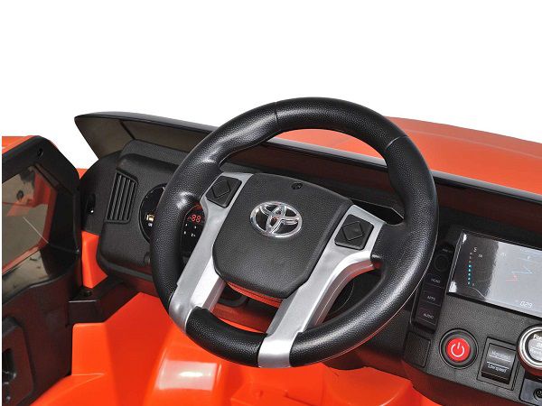 Электромобиль Farfello Tundra JE1703 оранжевый - ОписаниеДизайн выполнен по лицензии от концерна Toyota. Небольшие дверцы с тонированными окошками открываются и захлопываются на замки-фиксаторы. Кресло с чехлом из эко-кожи, цельной спинкой и подголовником, для комфортного катания малыша. Сиденье оборудовано поясным ремнём безопасности с регулировкой натяжения.