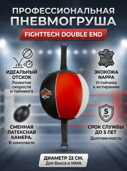 Пневмогруша боксерская Fighttech Double End FT DEBFT - ОписаниеСомневаетесь? - Посмотрите рейтинг ТОП-10 по категории «Боксерские мешки»Пневморастяжка Double End груша шарообразной формы для развития скорости, точности и тайминга. Внешний чехол для груши изготовлен из экокожи Nappa (сверхустойчева к износу, истиранию и многократному изгибу).