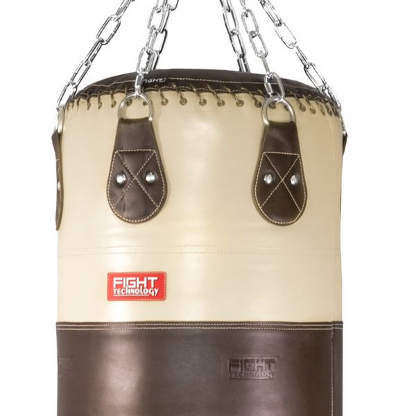 Комбинированная набивка мешка придает ему жесткость. Вспененный каучук обеспечивает отличную амортизацию при ударе, благодаря чему груша сохраняет устойчивость и противодействие силе. Текстильный лоскут является одним из менее травмоопасных наполнителей, однако, боксеры могут быть подвергнуты вероятности вывиха кисти, поэтому данный вариант подходит для спортсменов с не очень сильным ударом. Натуральная кожа не разбивается, не тянется и не гнется, что дает возможность работать руками и ногами по груше. Металлическое крепление с карабином позволяет подвесить снаряд в любом удобном месте.