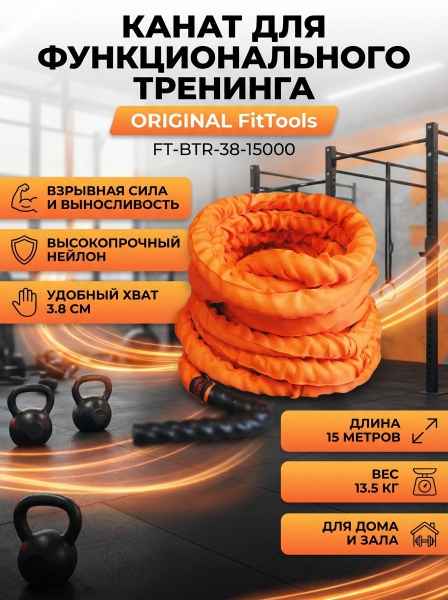 Канат для функционального тренинга Original FitTools FT-BTR-38-15000 - БрендСтрана бренда: КНР Премиальность бренда:Посмотреть все канаты для функционального тренинга Original FitTools (1) Канат для функционального тренинга Original FitTools FT-BTR-38-15000 - Характеристики