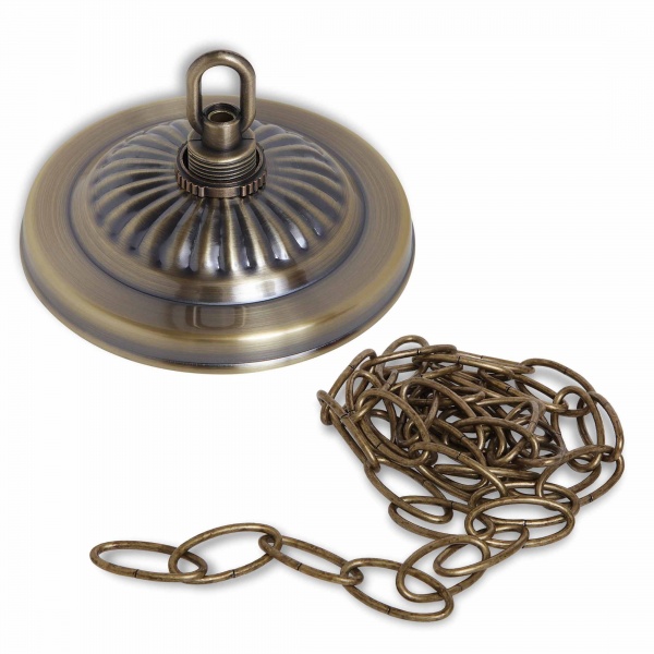 Светильник Fortuna Billiard Equipment Crown Bronze 1 плафон - ОписаниеПлафон данной модели светильника состоит из двух частей - металлической и стеклянной - и имеет надежное двойное крепление: с помощью винтов и пластикового кольца на патроне. Патрон керамический, для лампы с цоколем Е27. Применение керамических патронов увеличивает срок эксплуатации светильника. Электрический провод длиной 230 см укомплектован вилкой и выключателем, которые при необходимости могут быть удалены. Наличие вилки позволяет проверить работоспособность светильника при покупке. Вилка также может использоваться для постоянной работы. Длина подвесной цепи 200 см. При необходимости дополнительные цепи поставляются отдельно. В комплект включена потолочная чашка диаметром 12 см.