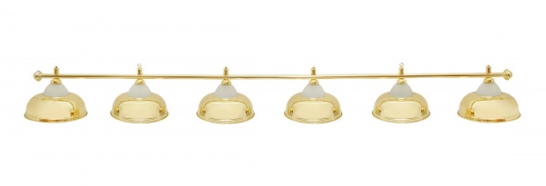 Лампа Fortuna Billiard Equipment Crown Golden 6 плафонов - ОписаниеСветильник укомплектован цельной металлической штангой с гальваническим покрытием. Изготовление штанги из цельной трубы исключает искривление светильника, которое происходит в случаях, когда штанга собирается из двух секций. Металлические плафоны крепятся с помощью пластикового кольца на патроне. Патроны керамические, для лампы с цоколем Е27. Применение керамических патронов увеличивает срок эксплуатации светильника. Электрический провод длиной 230 см укомплектован вилкой и выключателем, которые при необходимости могут быть удалены. Наличие вилки позволяет проверить работоспособность светильника при покупке. Вилка также может использоваться для постоянной работы.