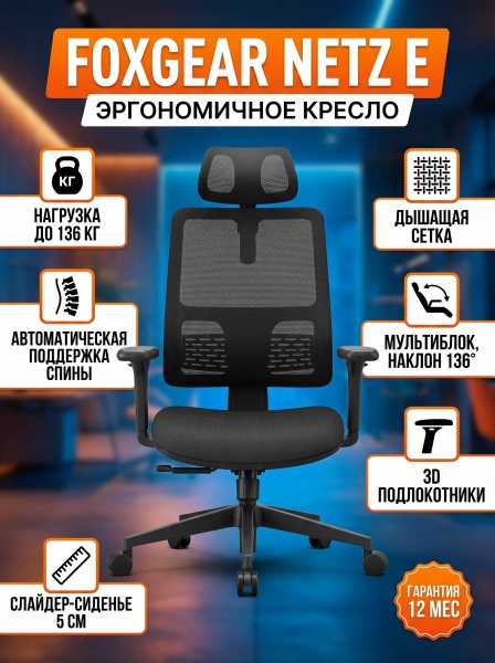 Кресло компьютерное эргономичное FoxGear NETZ модель E, черный - Обзор ТОП-10 лучших ортопедических кресел 2025 🏆: Обзор и рейтинг