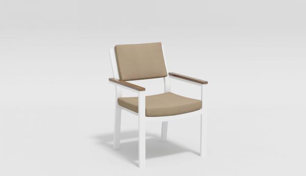 Обеденная группа Gardenini Bella 1426078147 - ОписаниеОбеденная группа Bella состоит из стола и 6 стульев. Подлокотники стульев и столешница из тика, съемный чехол подушки сидения на "молнии". Материалы и цвета: каркас мебели выполнен из всесезонного алюминия с порошковым покрытием белого цвета, подлокотники стульев декорированы вставками из тика, подушки сидений и спинки обшиты уличной тканью бежевого цвета (А 13809) с водоотталкивающей пропиткой, толщина подушек 5 см, чехол съемный на "молнии", столешница обеденного стола изготовлена из тика.