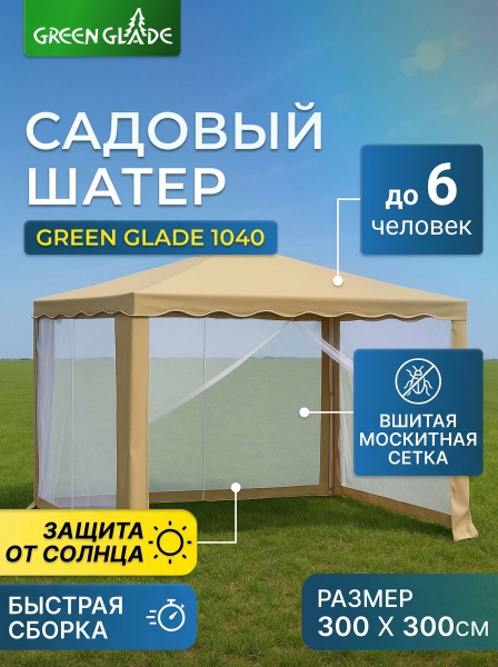 Шатер на 10 человек Green Glade 1040 - ОписаниеСомневаетесь? - Посмотрите рейтинг ТОП-10 по категории «Шатры»Садовый тент шатер Green Glade 1040.