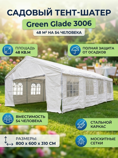 Садовый тент-шатер Green Glade 3006 - ДоставкаДоставка по Москве: бесплатно, 1-2 дняДоставка по Санкт-Петербургу: бесплатно, 2-3 дня Доставка по России: стоимость уточняйте у оператора. Садовый тент-шатер Green Glade 3006 - Отзывы0.0