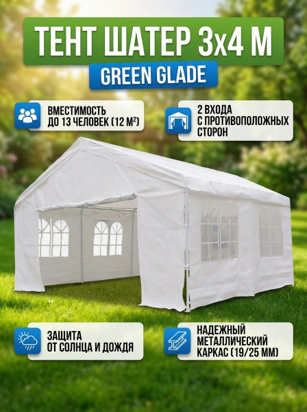 Садовый тент шатер Green Glade 3034 - БрендСтрана бренда: Россия Премиальность бренда:Посмотреть все палатки-шатры для дачи и отдыха Green Glade (25) Садовый тент шатер Green Glade 3034 - Характеристики