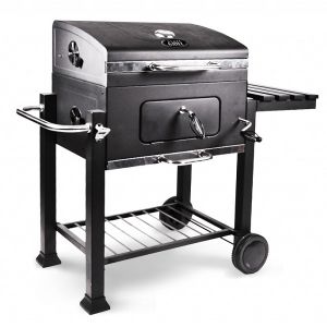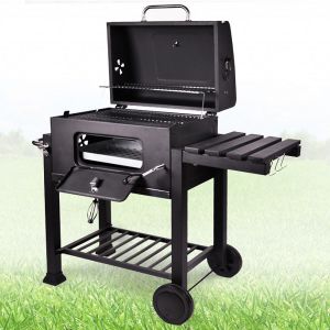 Конструкция гриля, весом в 11.5 кг и высотой 99 см, расположена на четырех опорных ножках, две из которых для удобства транспортировки и перемещений, дополнительно оснащены колесиками. Полочки по бокам и снизу, будут удобными для приборов или посуды. Процесс приготовления пищи регулируется при помощи изменения подачи воздуха. Для того, чтобы выкатить гриль и начать готовить, Вам потребуется всего пару минут.