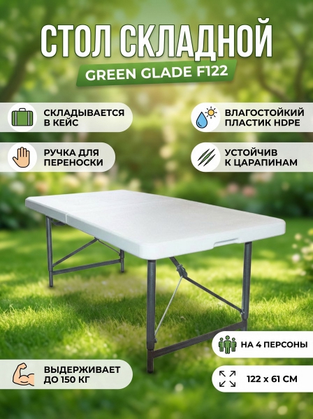 Стол складной Green Glade F122 - ДоставкаДоставка по Москве: 495 ₽, 1-2 дняДоставка по Санкт-Петербургу: 795 ₽, 2-3 дня Доставка по России: стоимость уточняйте у оператора. Стол складной Green Glade F122 - Отзывы0.0