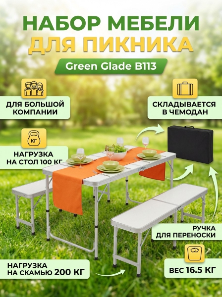 Набор мебели для пикника Green Glade В113 - ДоставкаДоставка по Москве: бесплатно, 1-2 дняДоставка по Санкт-Петербургу: бесплатно, 2-3 дня Доставка по России: стоимость уточняйте у оператора. Набор мебели для пикника Green Glade В113 - Отзывы0.0