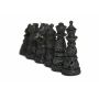 Украшенные сложнейшими резными узорами, фигуры выполнены из натуральной древесины бука и дополнены бронзой, блеск которой делает их еще более изящными и благородными. Также каждая фигура дополнена подложкой, благодаря которой поверхность доски, где ими будут играть, не поцарапается.