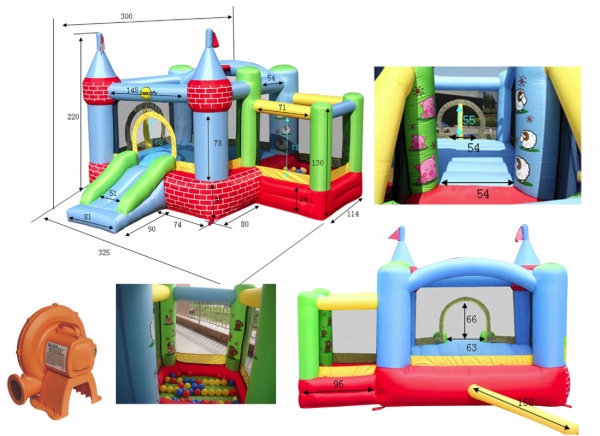 Надувные батуты Happy Hop приобретаются для парков отдыха, детских площадок, игровых центров, пляжей. Страна бренда: КНР Премиальность бренда:Надувной батут с горкой Happy Hop 9112 «Цитадель» - Характеристики