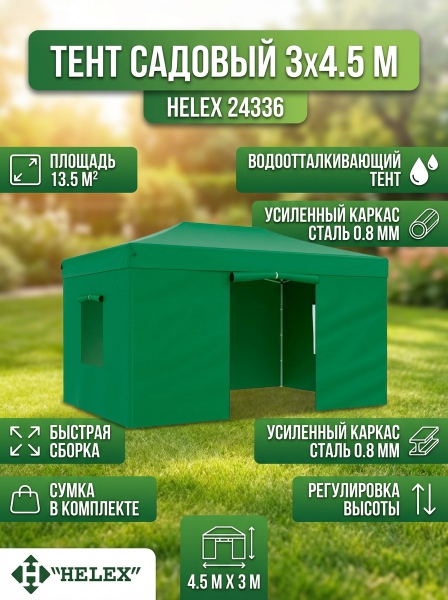 Тент садовый Helex 3x4,5х3м полиэстер зеленый 24336 - Обзор ТОП-10 лучших шатров 2025 🏆: Обзор и рейтинг