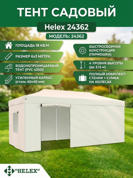 Тент садовый Helex 3x6х3м полиэстер бежевый 24362 - Обзор ТОП-10 лучших шатров 2025 🏆: Обзор и рейтинг