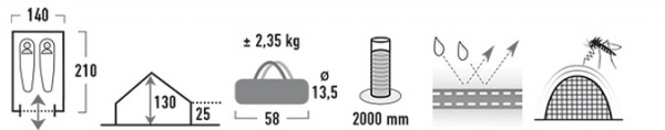Материал тента имеет полиуретановое покрытие и водонепроницаемость не менее 2000 мм водяного столба, что защитит вас даже при сильном дожде. Все швы проклеены термоусадочной лентой, гарантирующей, что влага не проникнет внутрь.