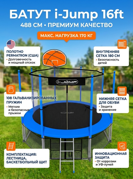 Батут с баскетбольным щитом i-Jump Basket 16ft blue - Обзор ТОП-10 лучших батутов 2025 🏆: Обзор и рейтинг