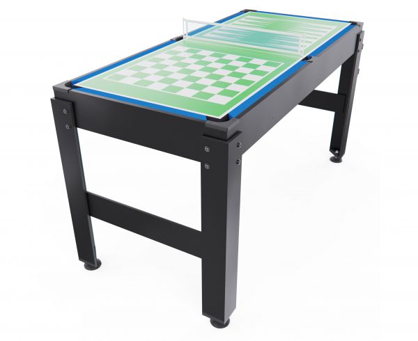 Основные характеристики Размер стола: 122 x 61 см Количество игр: 15 различных игровых поверхностей Материал: Высококачественный износостойкий пластик Конструкция: Трансформируемая игровая поверхность В одном устройстве собраны самые популярные настольные игры и спортивные симуляторы: