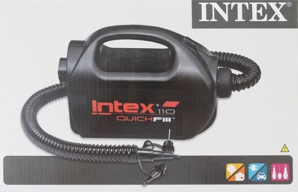 Насос электрический Intex Quick-Fill High PSI 68609 - ОписаниеНасос электрический QUICK-FILL High представляет собой универсальный электронасос повышенной мощности, который работает как от сети 220в, так и от автомобильного прикуривателя 12в. Насос имеет переключатель, позволяющий выбирать режим накачивания. Насос так же еще называют "Лодочный" из-за самой высокой производительности в линейке насосов Intex. Насос имеет защиту от влаги, благодаря чему его можно использовать не только в помещениях, но и на природе. С помощью этого насоса можно как накачивать изделия, так и сдувать их. В комплекте с насосом идет адаптер на 220в, провод к прикуривателю 12в, шланг и четыре универсальных насадки для всех видов надувных изделий и мячей. Насос подходит ко всем надувным изделиям INTEX.
