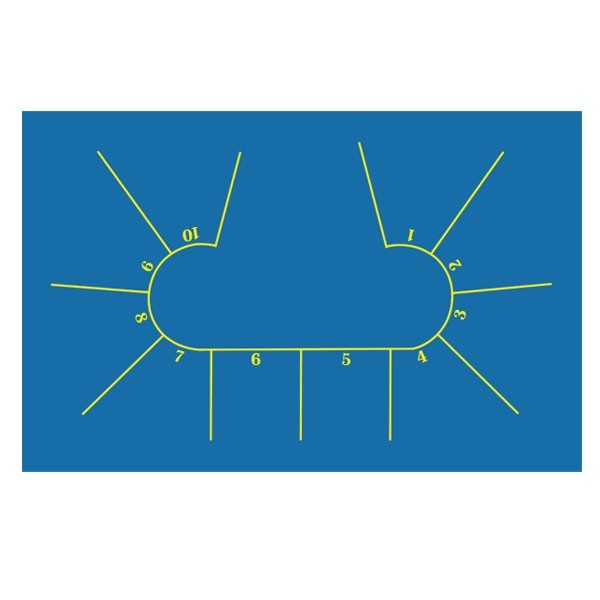 Сукно для покера Iwan Simonis 7410 Professional Texas Poker Hold'em имеет специальную разметку, соответствующую требованиям правил игры в Texas hold’em. Краска, которой выводится разметка, не наносится поверх сукна, а пропитывается в ткань насквозь, поэтому рисунок не стирается в процессе эксплуатации.