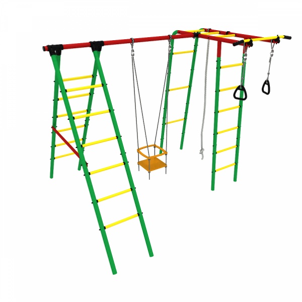 Уличный детский спортивный комплекс Kampfer Happy Child. Конструкция комплекса позволяет легко перевешивать дополнительное навесное оборудование, каждый раз создавая новые игровые зоны, заменять навесы по мере роста и смены интересов ребенка. Играя на детском спортивном комплексе Happy Child, дети укрепляют мышцы, развивают ловкость и физическое здоровье. В комплекте: 4 лестницы гимнастические, перекладина. качели рукоход, турник, кольца гимнастические, канат.