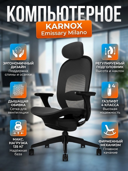 Компьютерное кресло Karnox Emissary Milano черный каркас - Преимущества