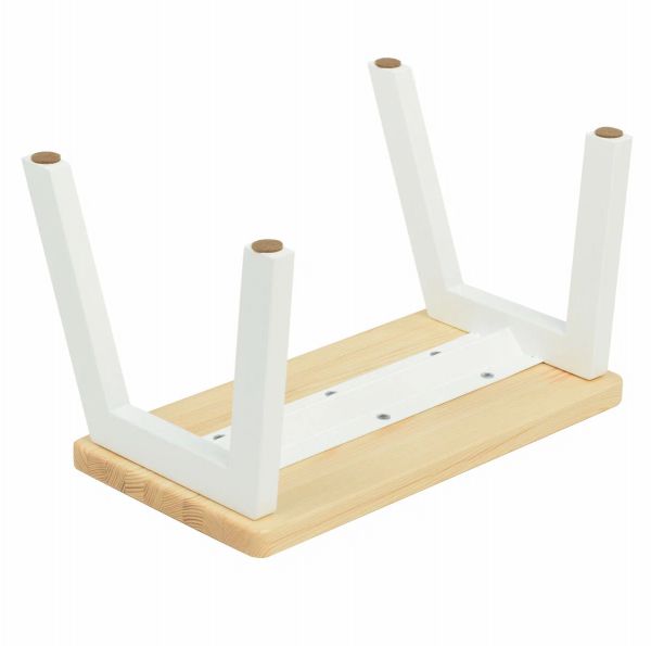 Данной подставочке найдется достойное место в вашей квартире, гараже, кладовке и загородного дома. Ведь это еще и мини стремянка, с помощью которой Вы с легкостью достанете необходимые вещи с верхних полок. Благодаря металлическому каркасу стремянка выдерживает 150 кг, но фактически еще больше. Стальной каркас покрыт ударопрочной краской белого цвета. Комбинация дружественного союза крепкого металла и теплого дерева в современных оттенках впишутся практически в любой современный стиль помещения.