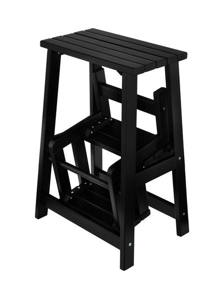 Высота стремянки-табурета 62 см, что позволит с легкостью достать с высоты практически любую вещь. Откидная подножка-ступень быстро занимает свое рабочее положение и также легко складывается обратно.