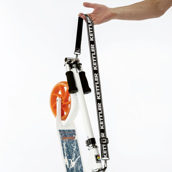 Самокат Kettler Scooter Zero 8 Authentic Blue - ОписаниеДетский самокат Zero 8 Authentic Blue - приятный и полезный способ передвижения. Модель имеет легкую и прочную алюминиевую раму, складную конструкцию и удобный ремень для переноски. Поэтому брать его с собой на прогулку одно удовольствие. Ремень прикреплен прямо к раме.