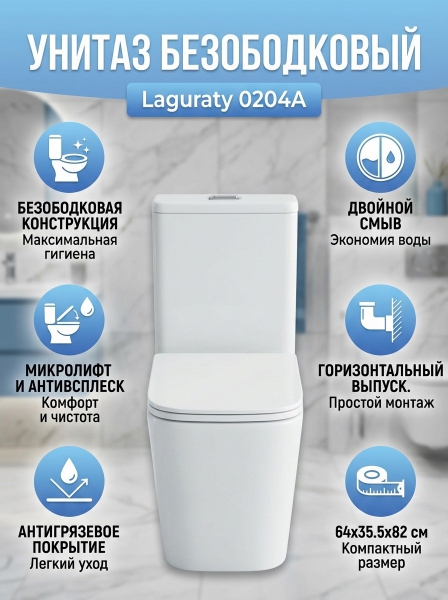 Унитаз компакт безободковый Laguraty 0204 A - Преимущества