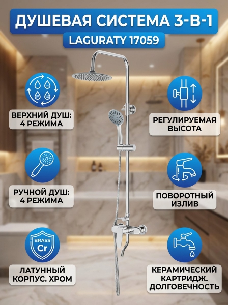 Душевая система Laguraty 17059 хром