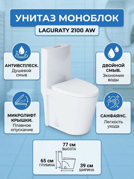 Унитаз моноблок Laguraty 2100aw - ДоставкаДоставка по Москве: бесплатно, 1-2 дняДоставка по Санкт-Петербургу: бесплатно, 2-3 дня Доставка по России: стоимость уточняйте у оператора. Унитаз моноблок Laguraty 2100aw - Отзывы0.0