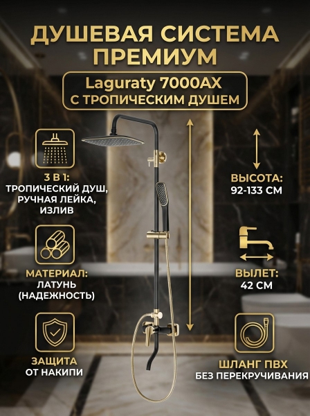 Душевая система Laguraty 7000AX черный/золото