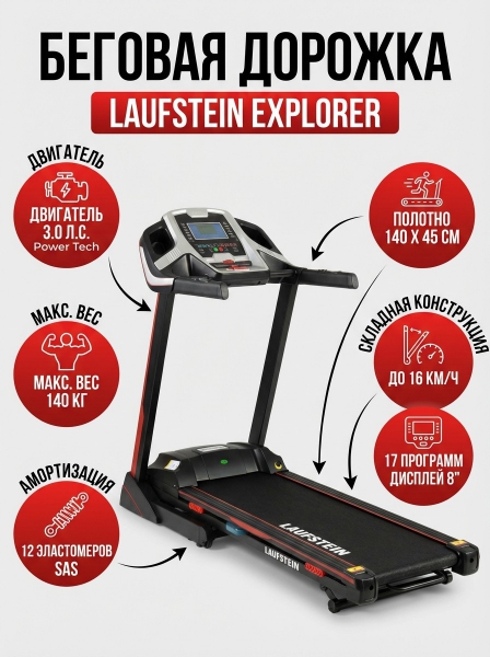 Беговая дорожка Laufstein Explorer - ДоставкаДоставка по Москве: бесплатно, 1-2 дняДоставка по Санкт-Петербургу: бесплатно, 2-3 дня Доставка по России: стоимость уточняйте у оператора. Беговая дорожка Laufstein Explorer - Отзывы5.0